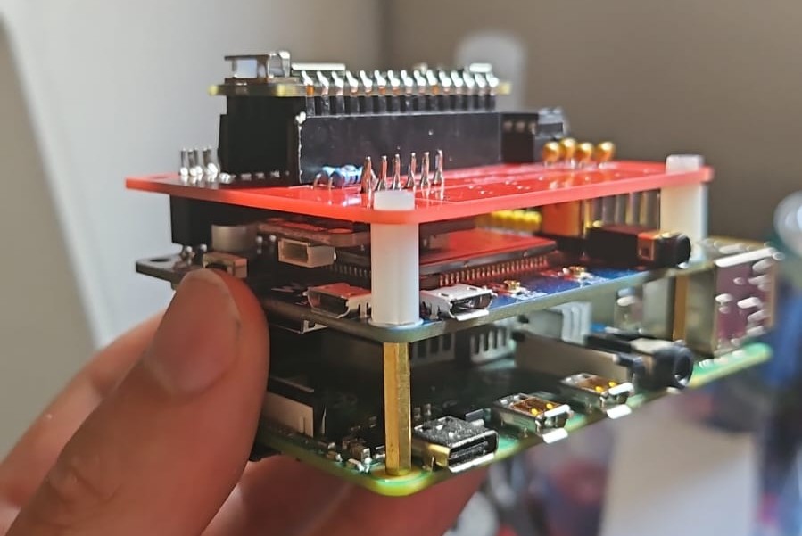 After setting up the custom GPIO configuration for the Pi so that it could communicate with all these components simultaneously, we set about designing a PCB that would house all our additional parts and sit on the top layer of the circuit sandwich forming. This went about multiple revisions but the final result was exactly what we needed.