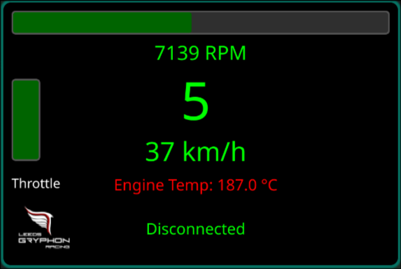 - Design a system capable of compiling data from the car into a dashboard-style UI to mount on the steering wheel so that the driver can remain informed of speed, RPM and other telemetry.